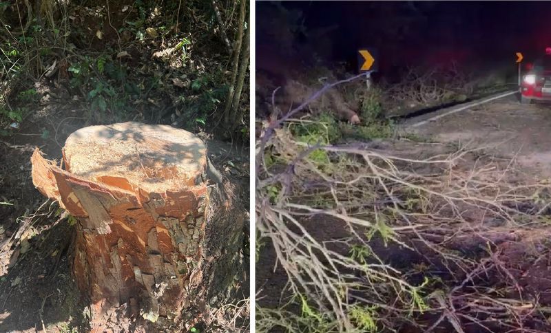 O local em questão é uma curva na BR 277, e foram cortadas árvores de cada lado da estrada com intuito de obstrução total.