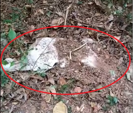 Ao seguir os rastros e entrar em uma mata ao lado da lavoura encontrou o bezerro morto e enterrado em meio as folhas.