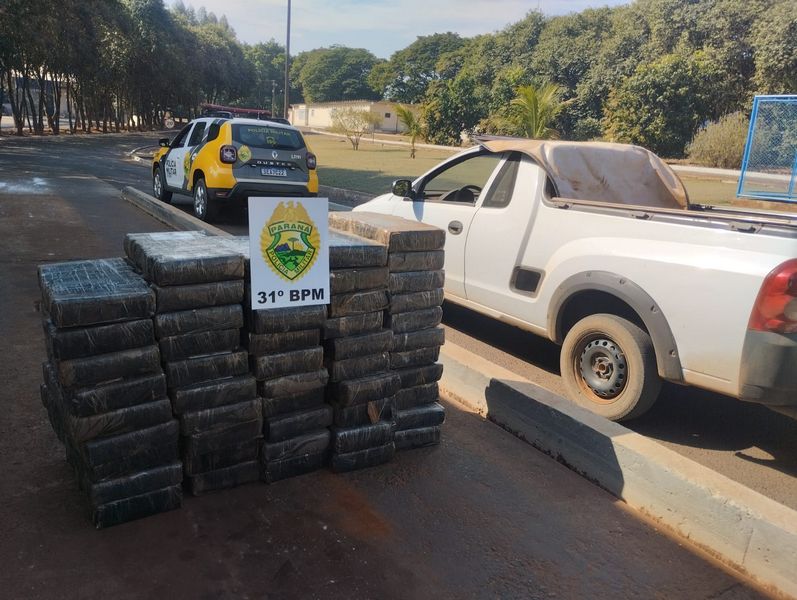 Quando os militares verificaram o veículo, foi constato que o mesmo estava carregado com diversos fardos de maconha.