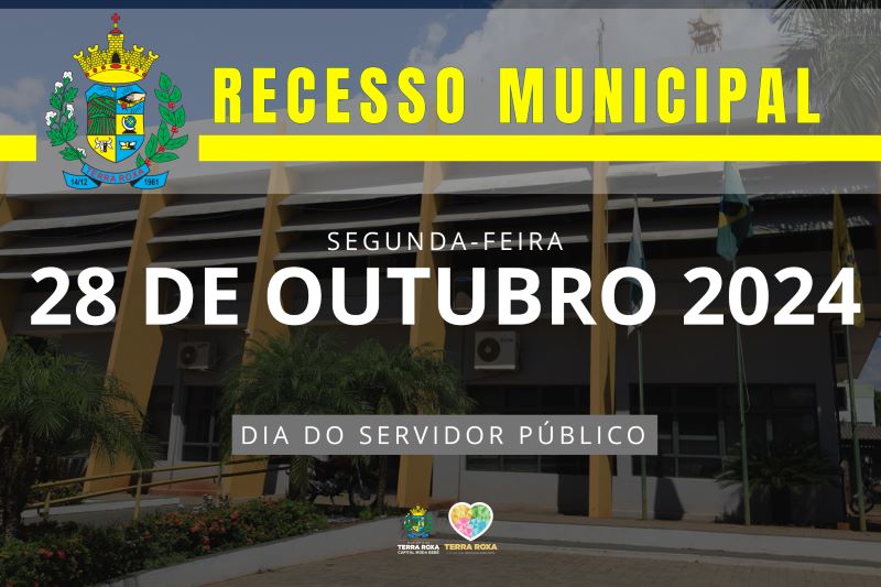 Na segunda-feira, 28 de outubro, haverá recesso nos órgãos da Administração Pública de Terra Roxa pelo dia do Servidor Público.