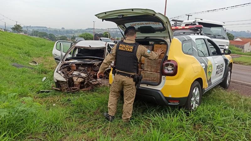Em seguida saiu da pista e capotou parando na posição normal, logo que o acidente aconteceu populares ligaram para os bombeiros e em seguida para a Polícia Militar relatando que tinha fardos de maconha dentro do Peugeot, a droga ficou espalhada pela pista.