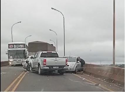 Um acidente de trânsito envolvendo três carros e um ônibus foi registrado na tarde desta quinta-feira (08) na Ponte Ayrton Senna.