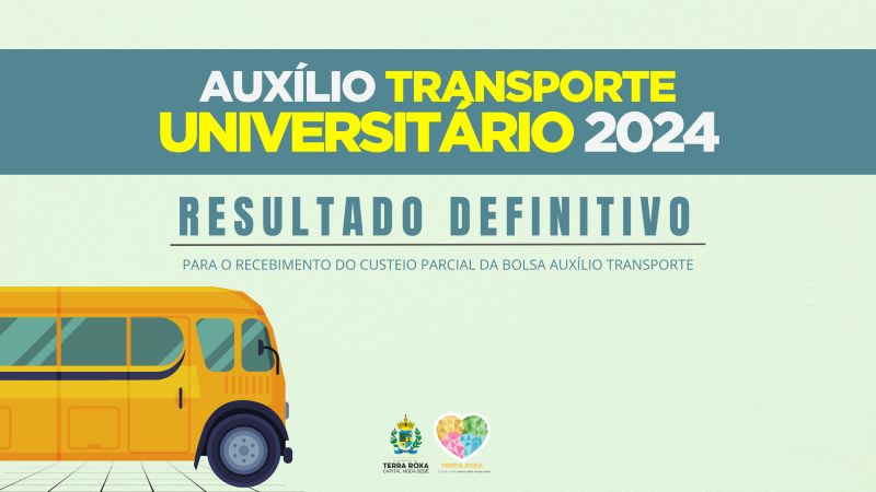 A Secretaria Municipal de Educação e Comissão de Análise e Deferimento e o Município de Terra Roxa, divulgou o resultado definitivo dos inscritos e cadastrados para o recebimento de custeio parcial de transporte de estudantes Bolsa Auxílio Transporte Universitário para o mês outubro de 2024, destinado a estudantes de cursos superiores em instituições de ensino de municípios da região.