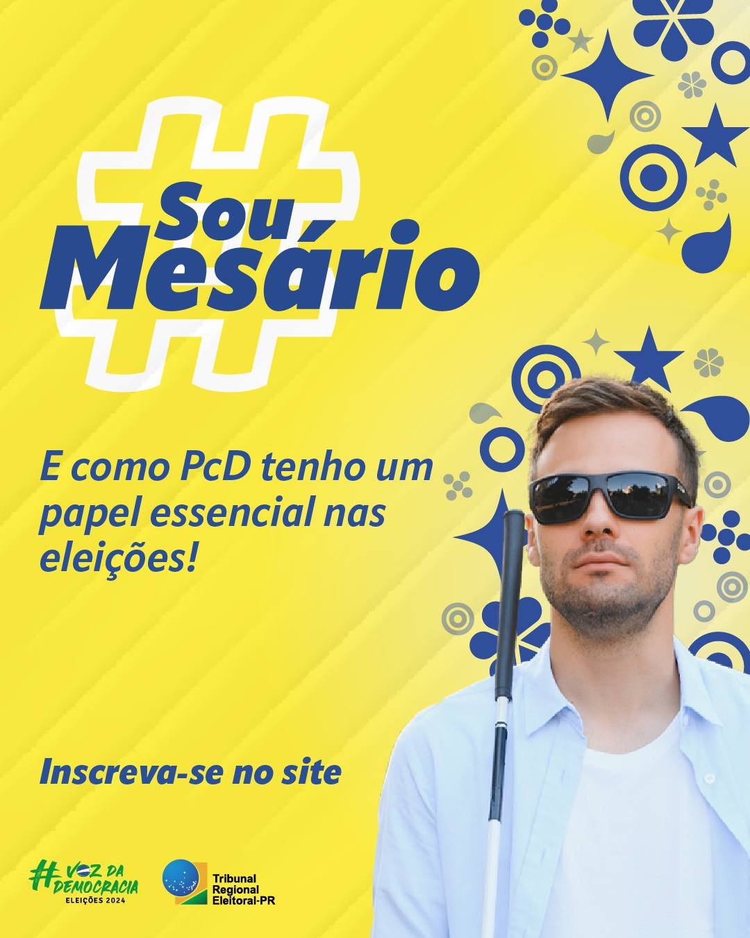 O Tribunal Regional Eleitoral do Paraná (TRE-PR) lançou a campanha #SouMesário para incentivar a participação de jovens e de pessoas com deficiência (PcD) de forma ativa no processo eleitoral de 2024. As inscrições para mesário voluntário podem ser feitas através de um formulário disponível no site do TRE-PR ou pelo aplicativo e-Título. Para realizar a inscrição via formulário, é necessário informar CPF, nome completo, endereço, e-mail e telefone para contato. Já pelo aplicativo, o eleitor deve baixá-lo no seu celular e, após o login, clicar na aba “mais opções”, na opção “mesário voluntário” e confirmar a inscrição.