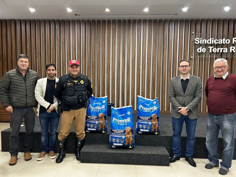 Na ocasião foram feitos entregues de sacos de ração para o Canil da 3ª Cia, doados pelo Conselho da Comunidade, em reconhecimento do Sindicato Rural de Terra Roxa ao trabalho do canil do BPRV na região.